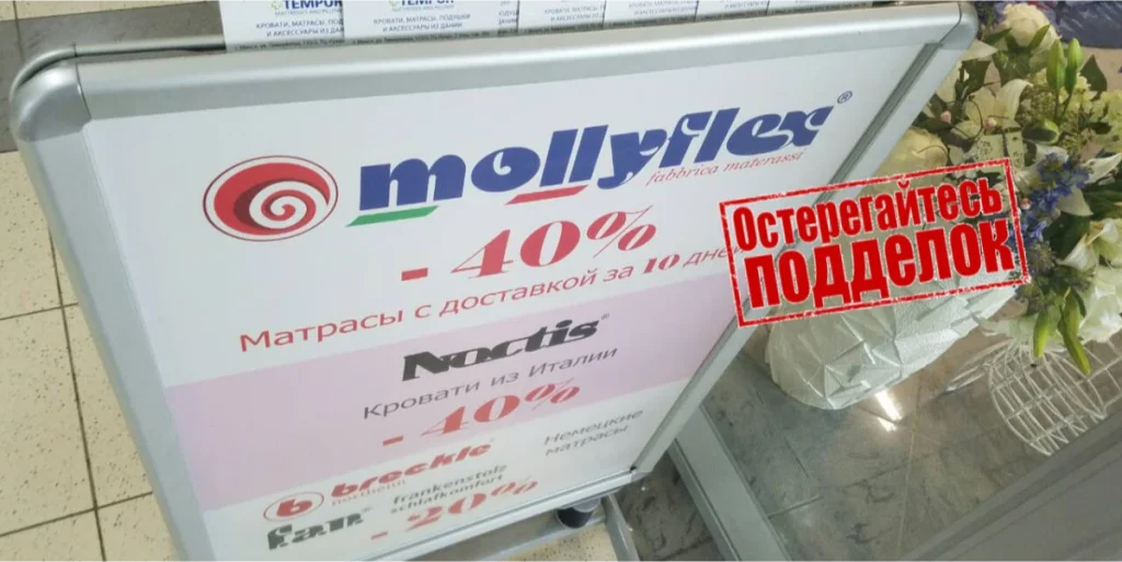 В Минске появились организации, которые продают кровати местного производства под вывеской Mollyflex® или Noctis®. Все бы ничего, но производятся их кровати в Беларуси, и ремесленники не имеют никакой репутации – «гаражное производство». Самое главное, что людей не информируют о том, где производится подделка. Они продаются под видом оригинала. Я думаю, если бы вы хотели купить подделку под итальянскую кровать, вы бы шли на это сознательно, учитывая все минусы такого решения, или, как минимум, хотели бы быть в курсе, что покупаете не многолетний опыт лучших итальянских мастеров, а ремесленничество местного ИП-шника.