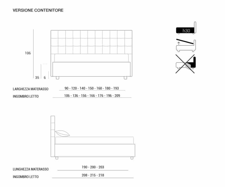 Высота царги кровати: h 30;