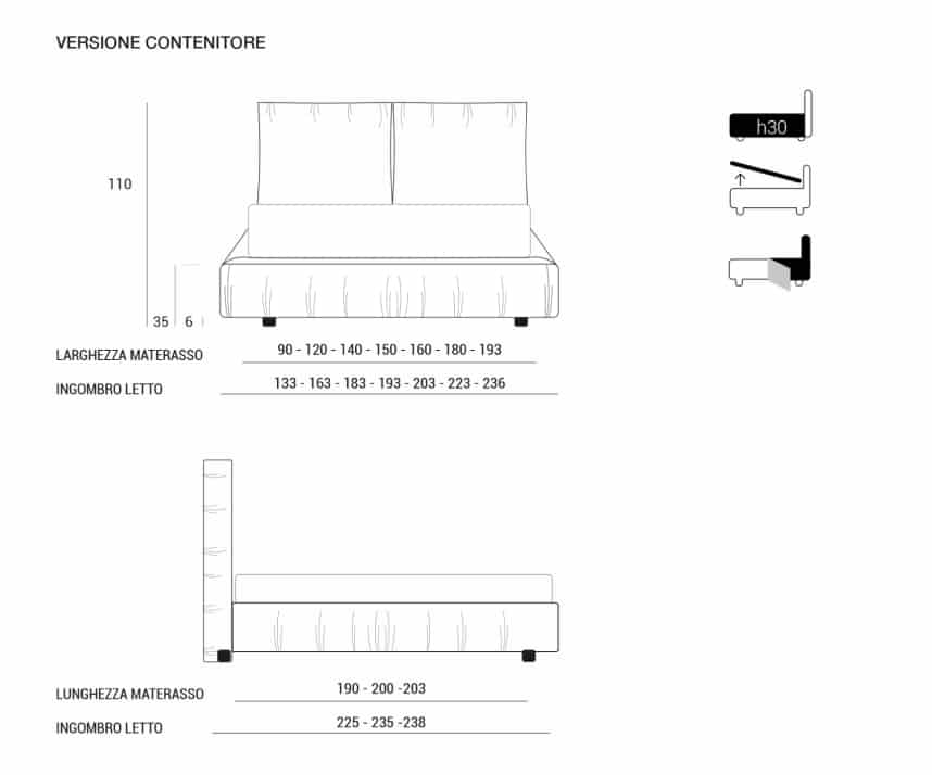 Высота царги кровати: h 30;