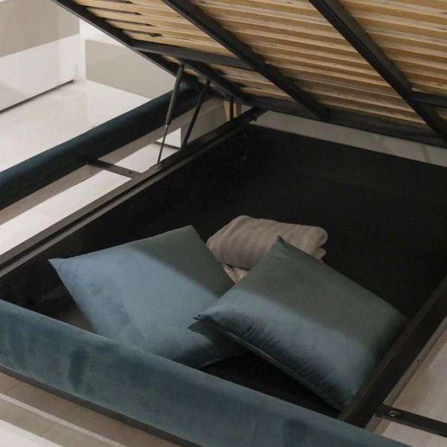 Кровать может быть укомплектована системой хранения.
