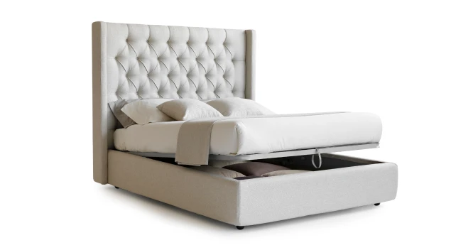 Кровать может быть укомплектована различными системами хранения.